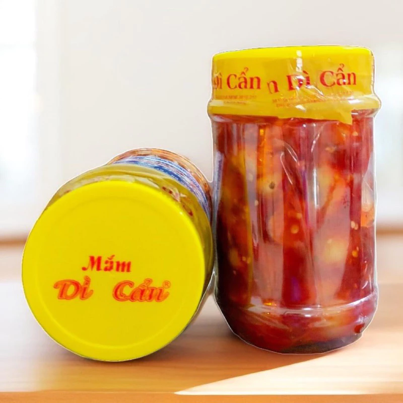 Với du khách khi đến Huế, mắm cà tôm Dì Cẩn là món quà đặc sản không thể bỏ qua. Hũ mắm được đóng gói cẩn thận, đẹp mắt, thuận tiện mang đi xa mà vẫn giữ trọn hương vị nguyên bản.