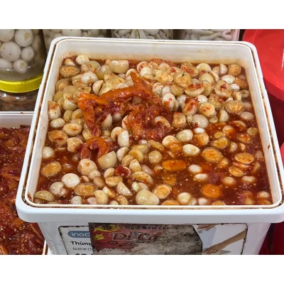 Gia vị truyền thống: Gồm tỏi, ớt, gừng, đường, nước mắm cốt nguyên chất. Tất cả hòa quyện tạo nên vị cay – mặn – ngọt hài hòa, đúng chất Huế.